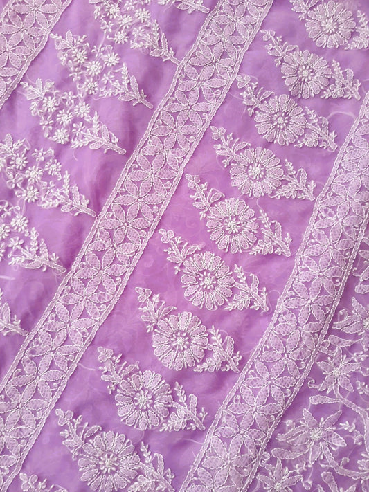 Purple Noor Full Jaal Hand Embroidered Lucknowi Chikankari Saree