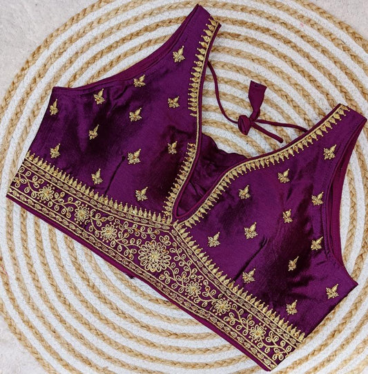 V Neck Embroidered Phantom Silk Blouse With Zari & Sequins Work