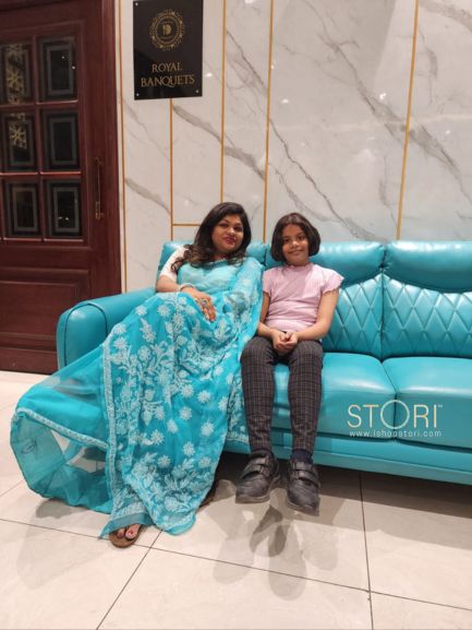 Firozi Surya Hand Embroidered Lucknowi Chikankari Saree