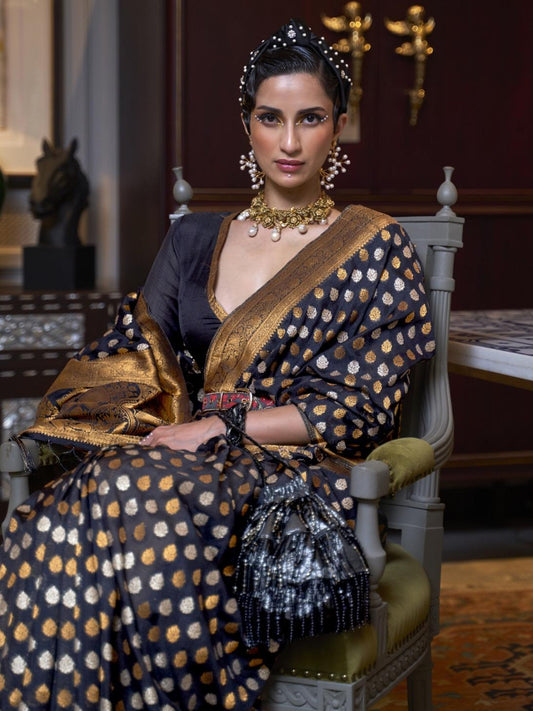 Charcoal Black Handloom Woven Raw Khadi Silk Saree