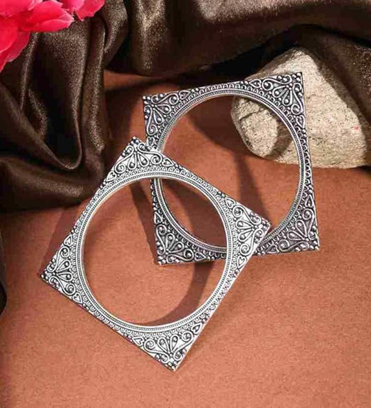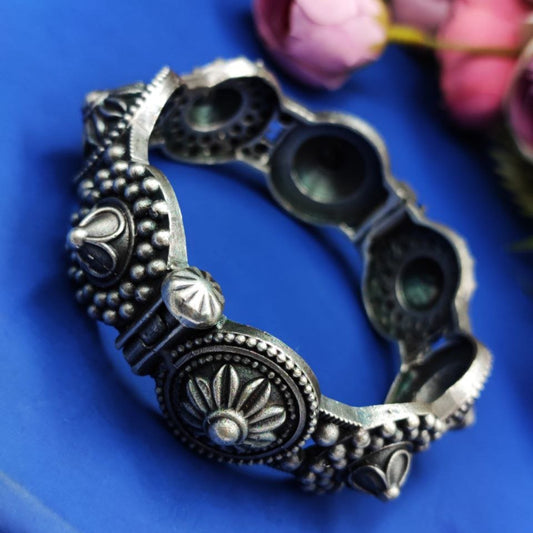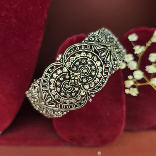 Saransh Silver Look Alike Oxidised Openable Kada / Bracelet