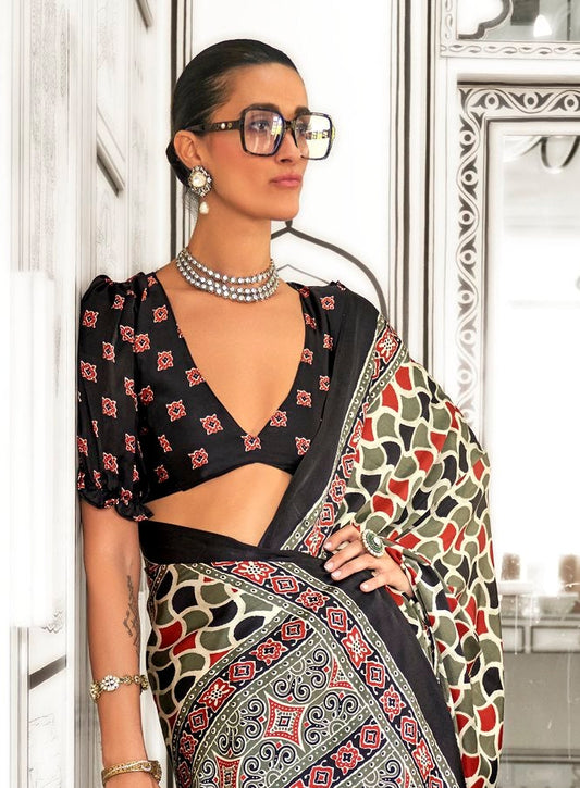 Olive Green Silk Saree With Designer Blouse