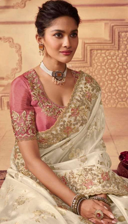 Light Pink Floral Organza Silk Saree