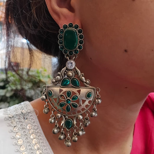 Oxidised Silver Lightweight Ghungroo Hanging Earrings
