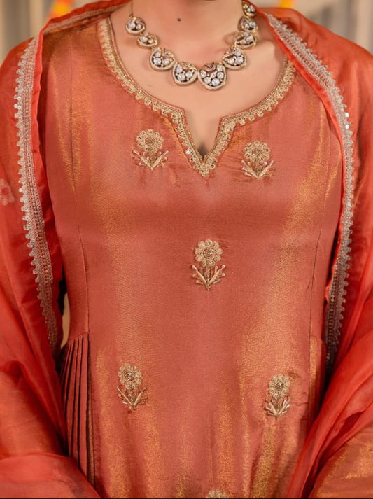 Rust Orange Silk Sharara Set