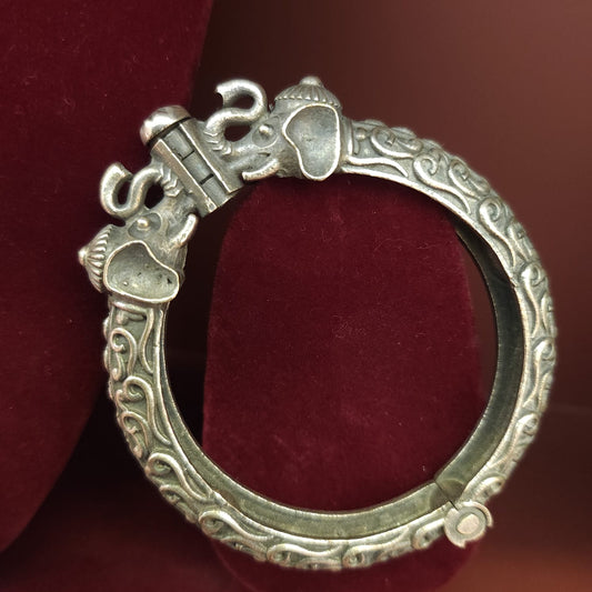 Elephant Silver Look Alike Oxidised Openable Kada / Bracelet