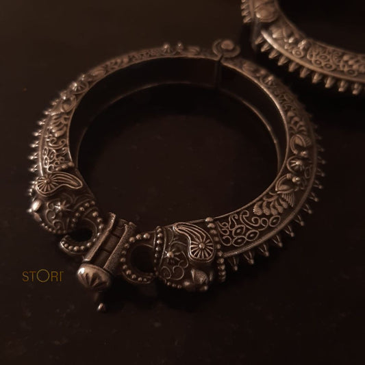 Uttoly Silver Look Alike Oxidised Openable Kada / Bracelet