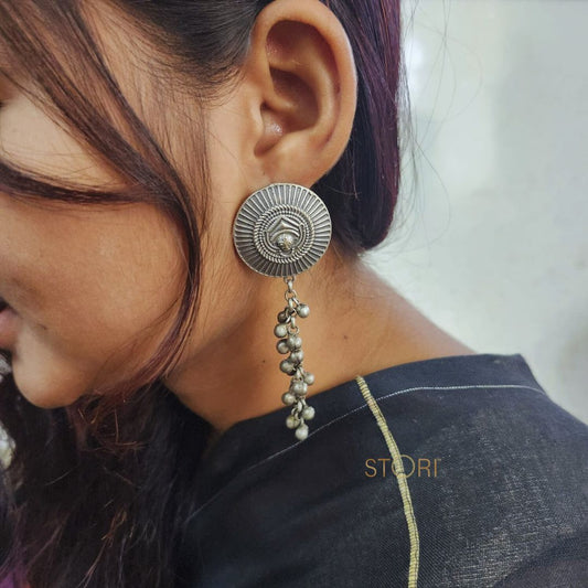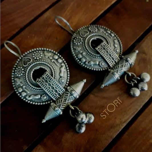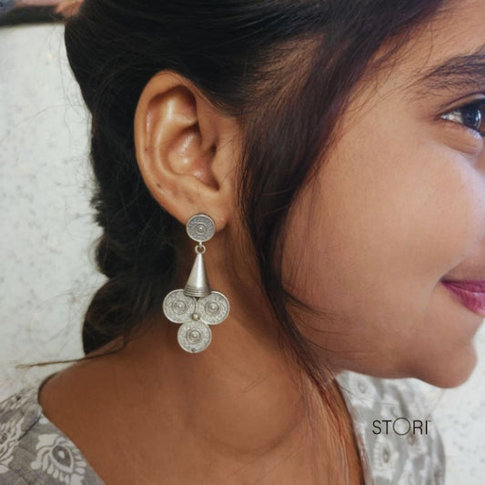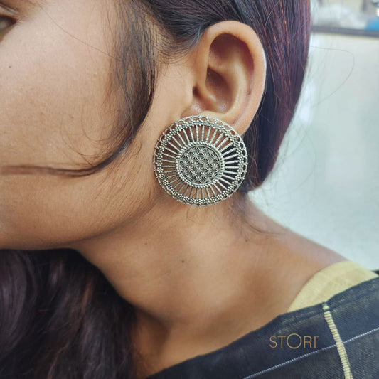 Nimisha Round Handcrafted Silver Look Alike Disc Earrings