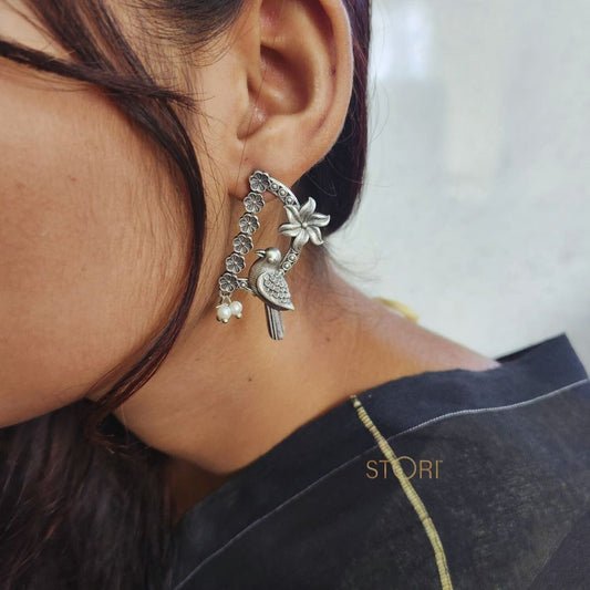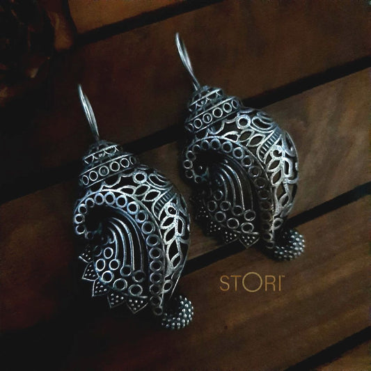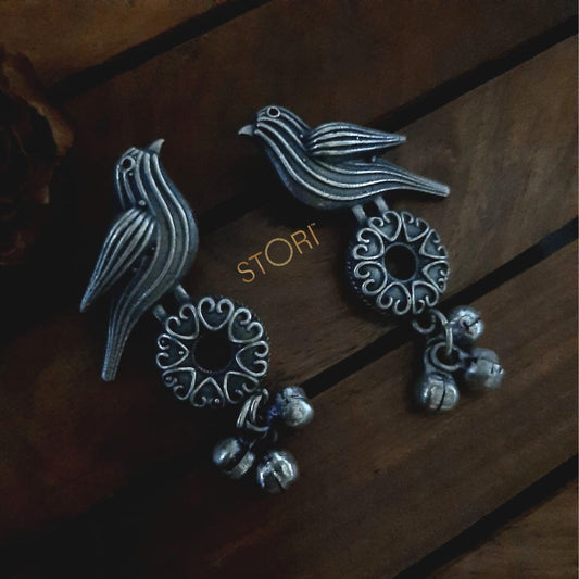 Bird's Lovenest Silver Look Alike Oxidised Earrings