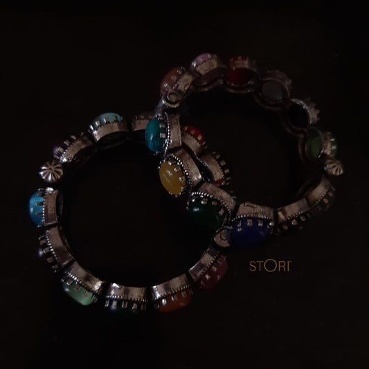 Mandavi Multicolor Stone Oxidised Openable Kada / Bracelet