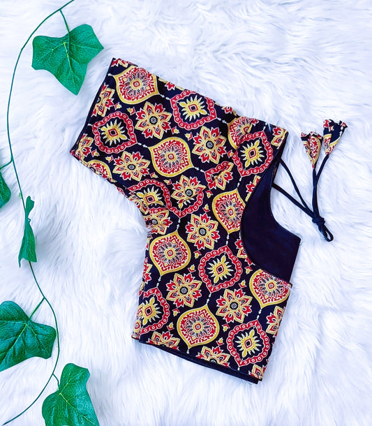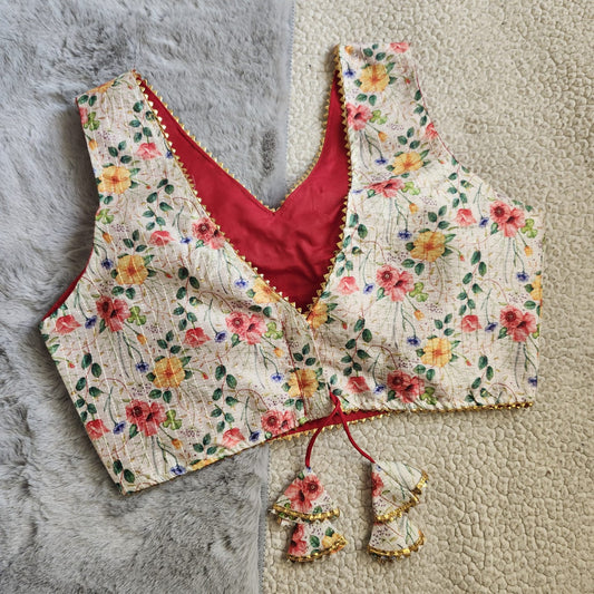 Digital Print V-Neck Sleeveless Readymade Blouse
