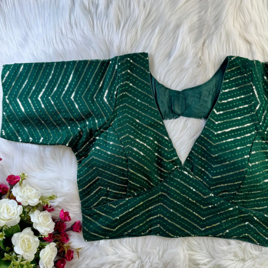 Mermaid Sequined V-Neck Georgette Designer Blouse