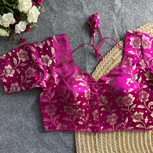 Back Open Noodle Straps Banarasi Silk Designer Blouse