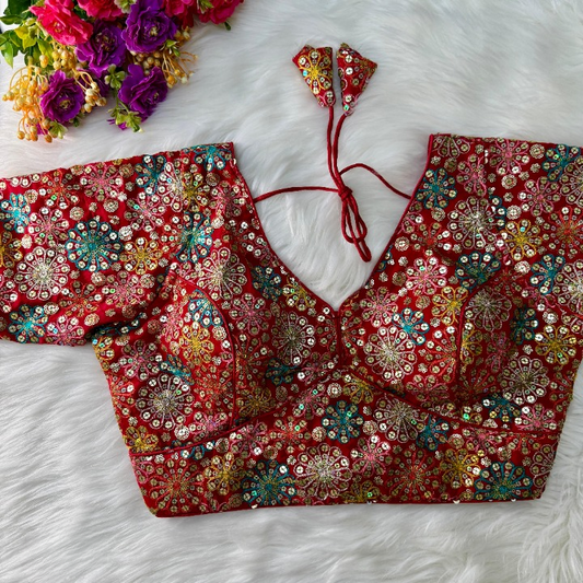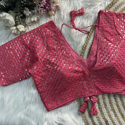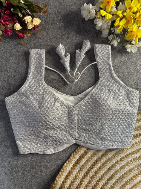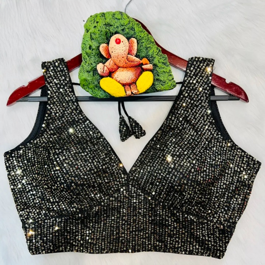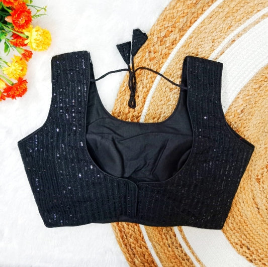 Sequin Embroidered Readymade Blouse With Short Sleeves