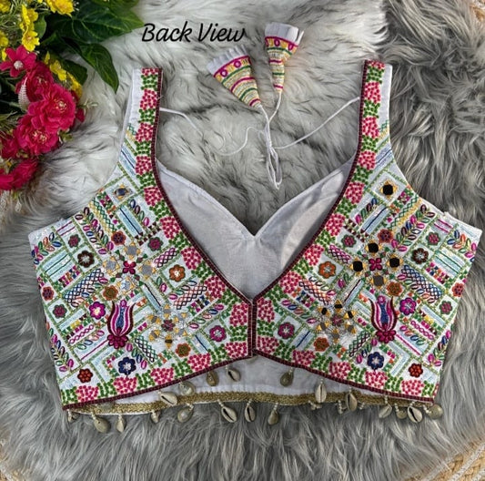 Prahan Kutchi Embroidered Blouse With Elbow Sleeves