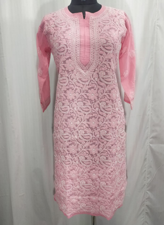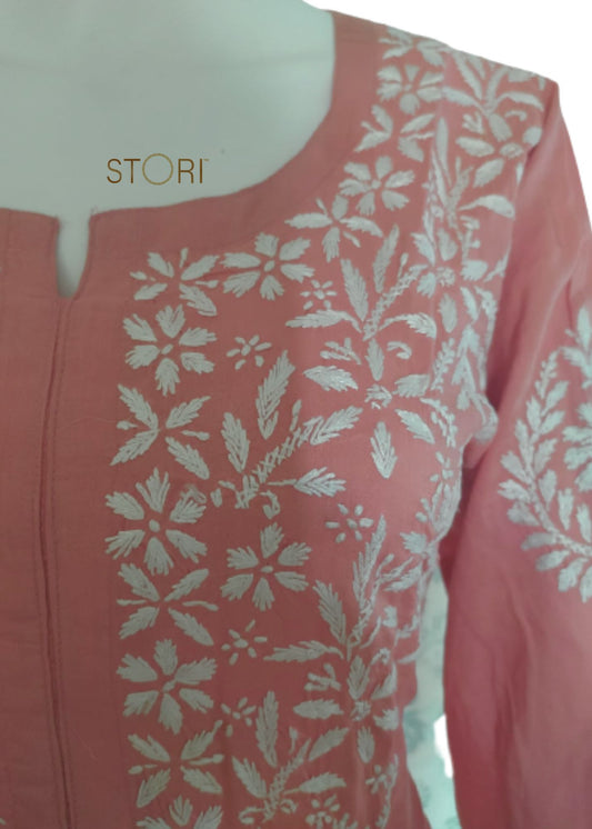 Zaarah Powder Pink Handcrafted Soft Modal Cotton Chikankari Kurti