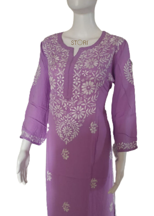 Zaarah Lavendar Handcrafted Soft Modal Cotton Chikankari Kurti