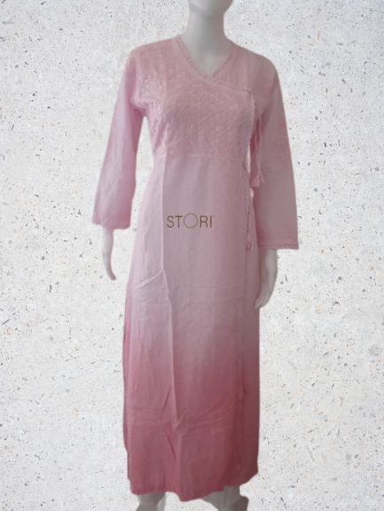 Light Pink Ombre Angarkha Pattern Soft Dobby Cotton Chikankari Kurti