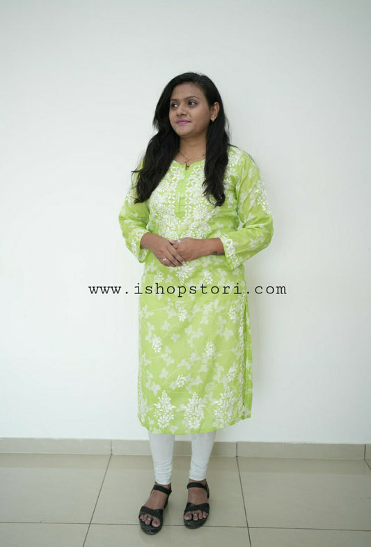 Petals Lime Green Cotton Mulmul Chikankari Kurti