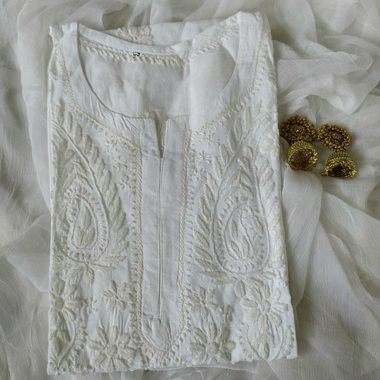 White Pure Soft Dobby Cotton Chikankari Kurti- Dyeable