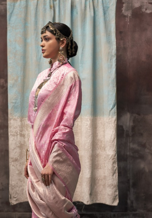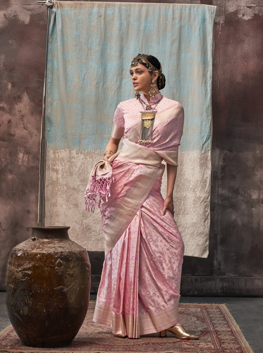 Baby Pink Soft Silk Banarasi Saree