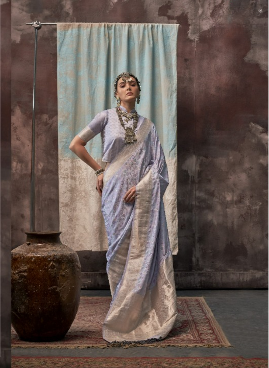 Powder Blue Soft Silk Banarasi Saree