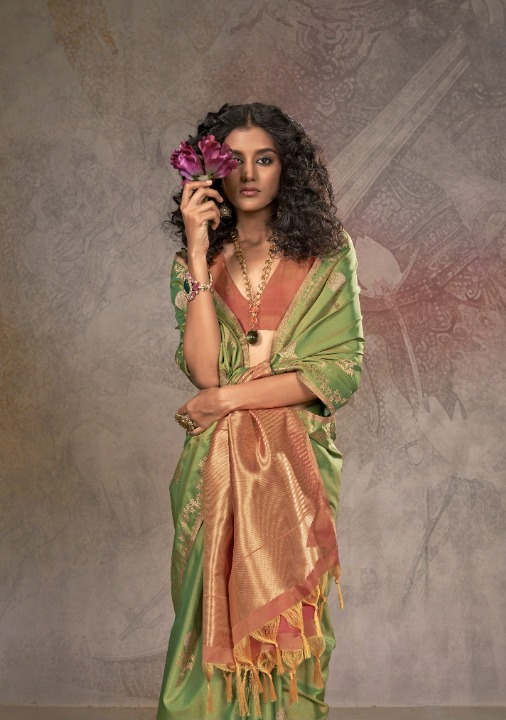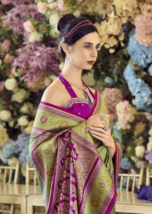 Olive Green Soft Silk Banarasi Saree