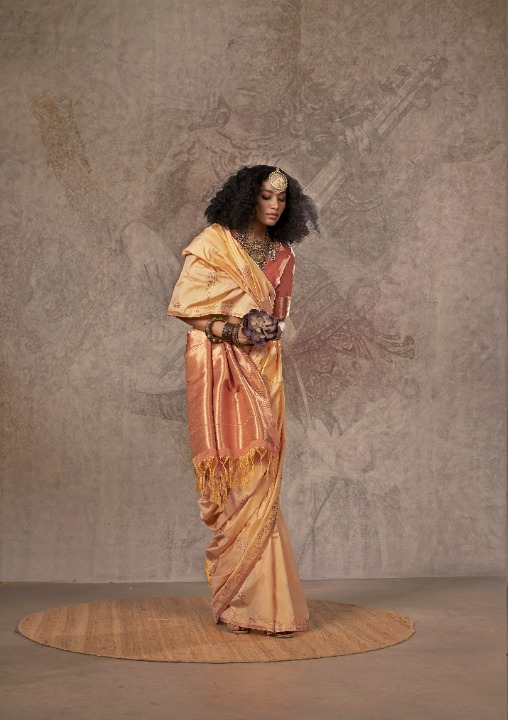 Apricot Peach Satin Silk Saree
