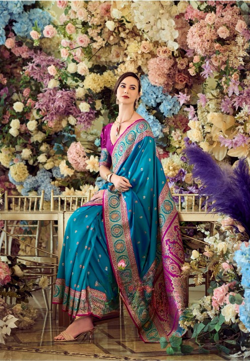 Rama Blue Soft Silk Banarasi Saree