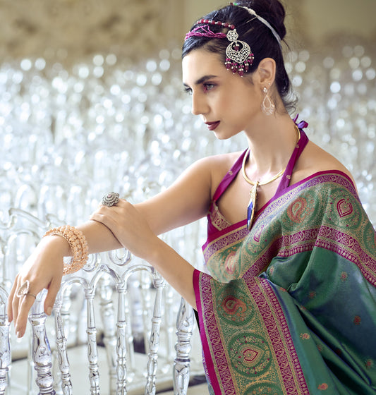 Moss Green Soft Silk Banarasi Saree