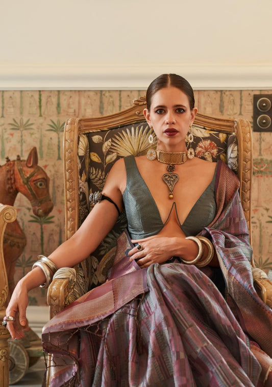 Iris Purple Abstract Pattern Organza Handloom Silk Saree