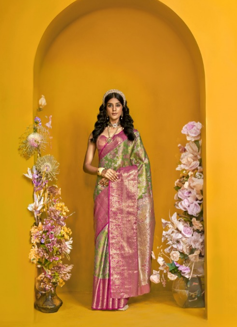 Green & pink Handloom Silk Saree