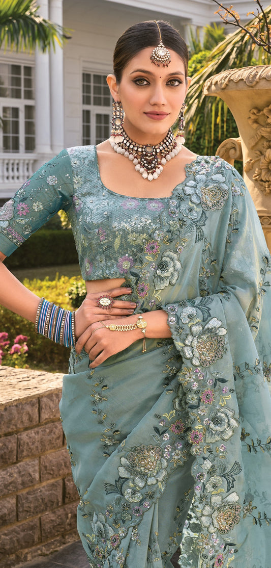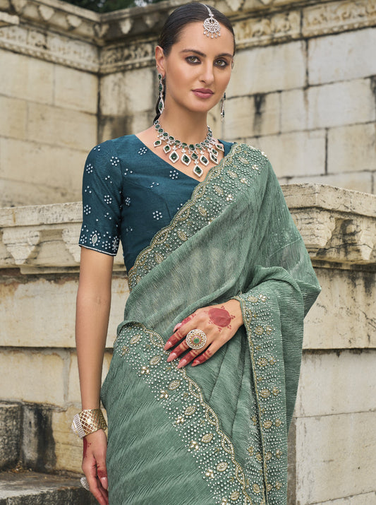 Firozi Banarasi Silk Saree