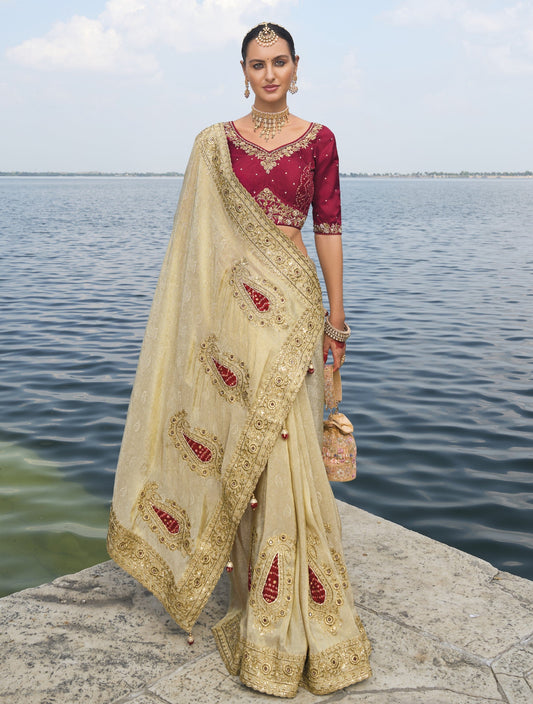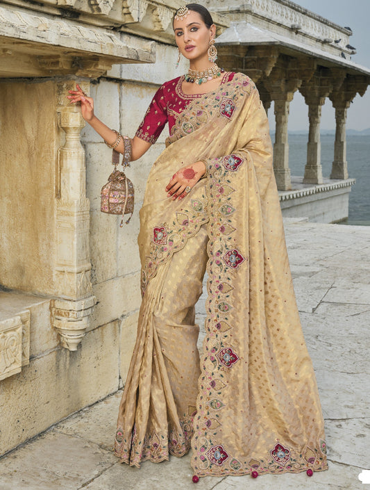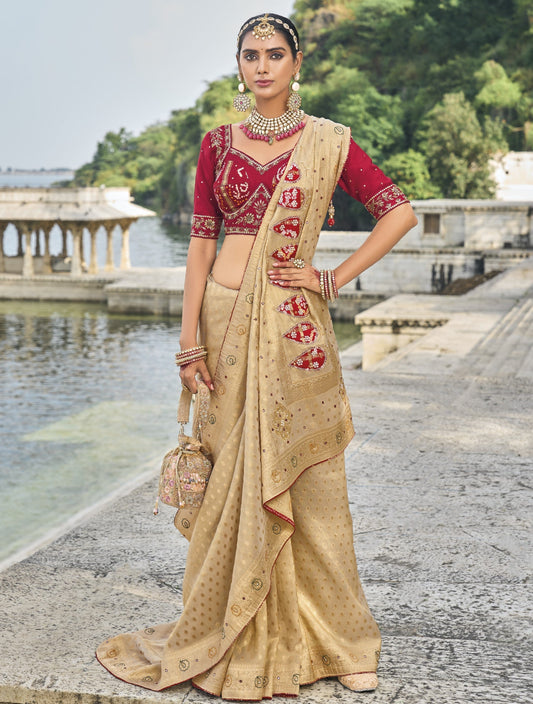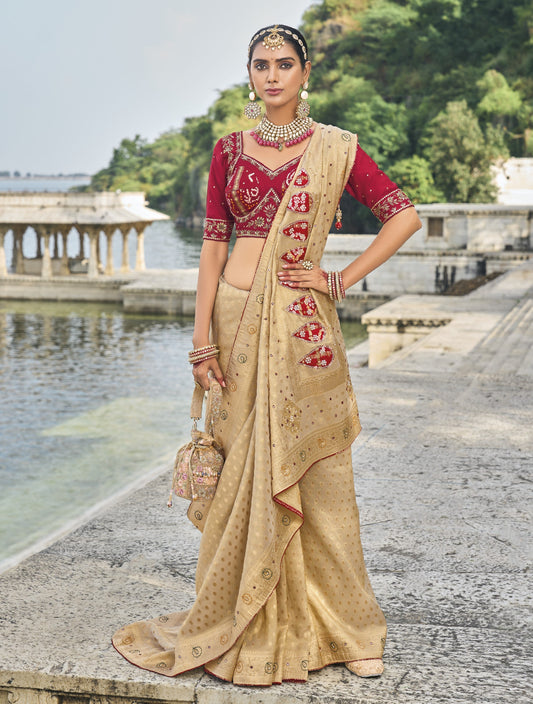 Cream Pure Banarasi Silk Saree