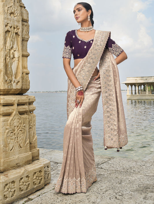 Fawn Brown Pure Banarasi Silk Saree