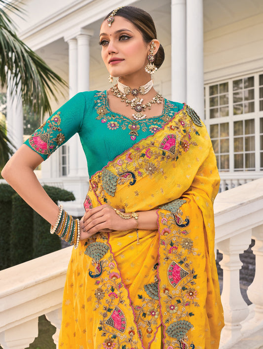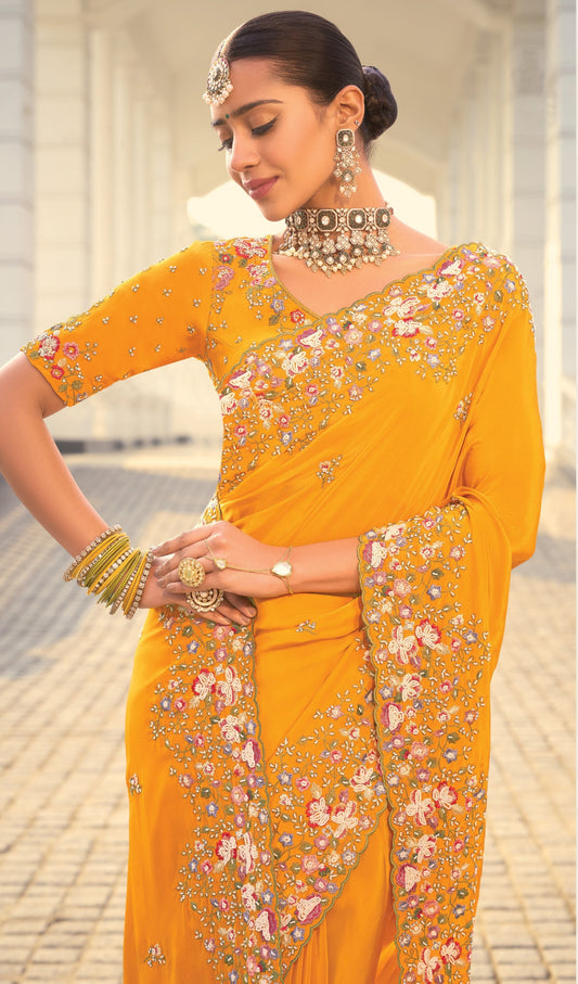 Yellow Banarasi Silk Saree