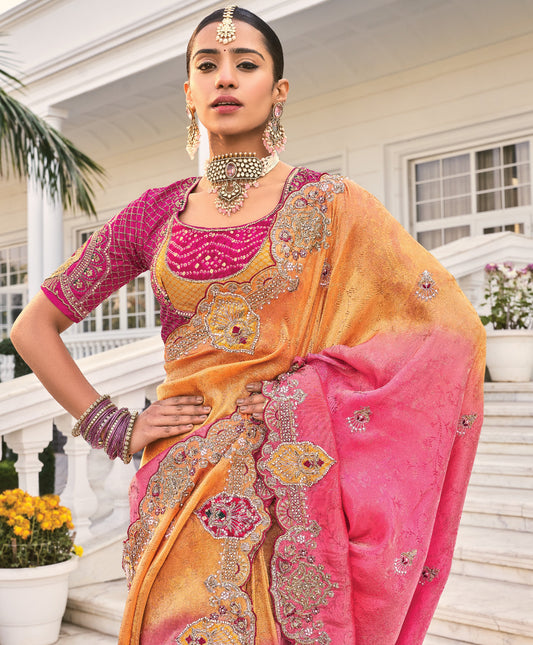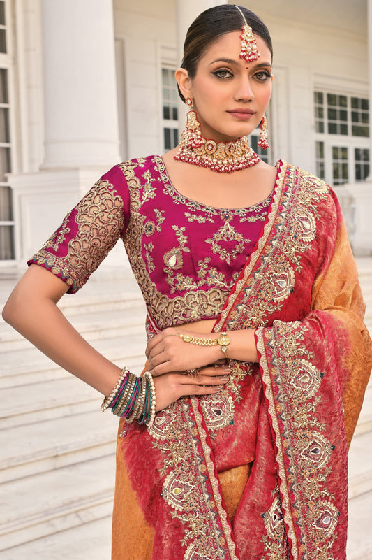 Peach Banarasi Silk Saree