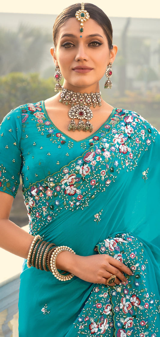 Blue Banarasi Silk Saree