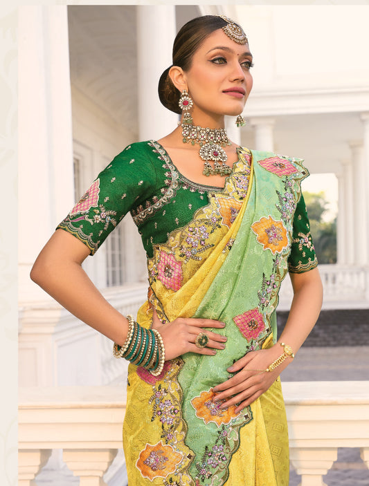 Yellow & Green Banarasi Silk Saree