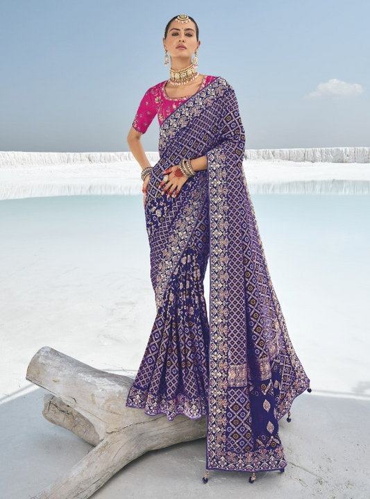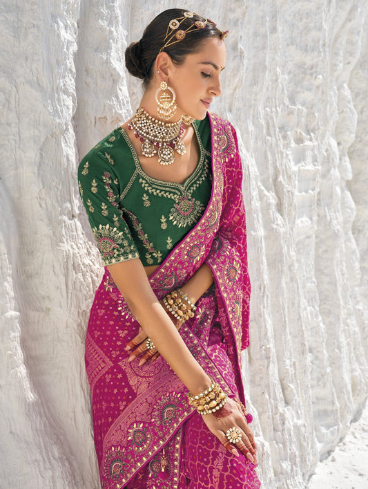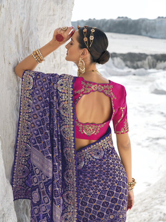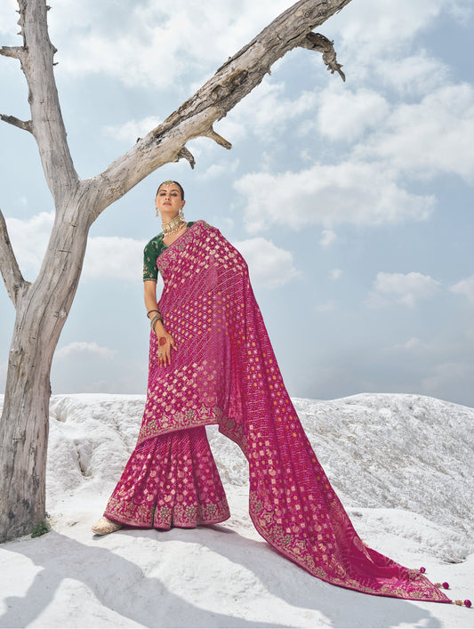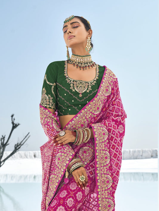 Bright Pink Bandhani Georgette Pure Silk Saree