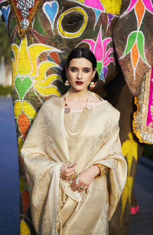 Pearl White Designer Patola Silk Saree- Best Seller!