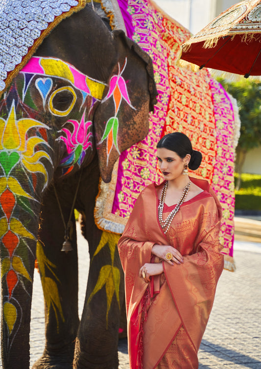 Mehendi Green Handloom Brocade Woven Kanjivaram Silk Saree
