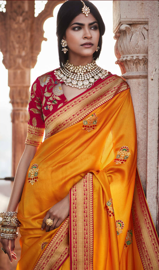 Rose Bouquet Floral Printed Satin Crepe Silk Saree