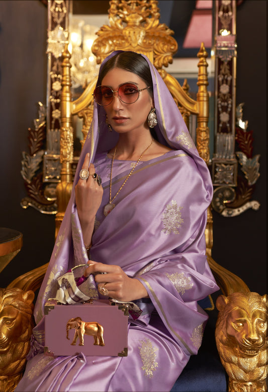 BHAGYASHREE in Tisha Printed Stripes Satin Crepe Silk Saree