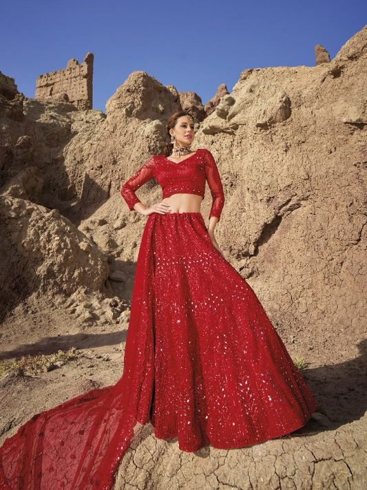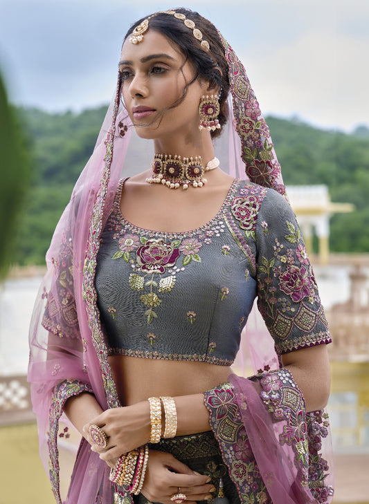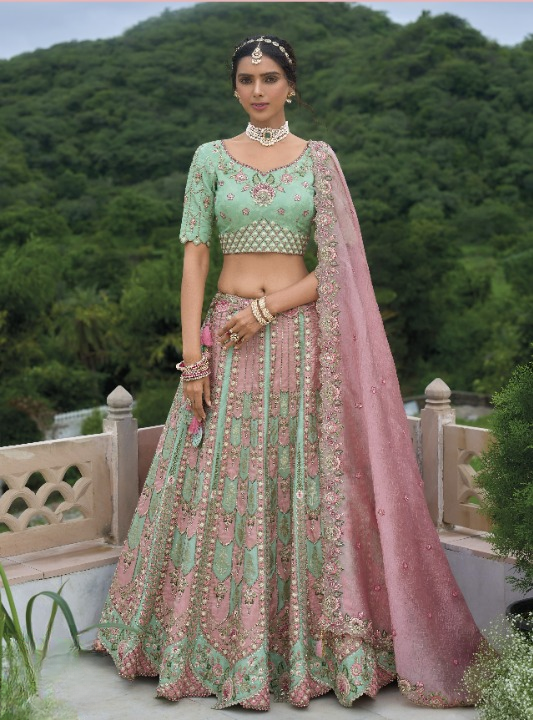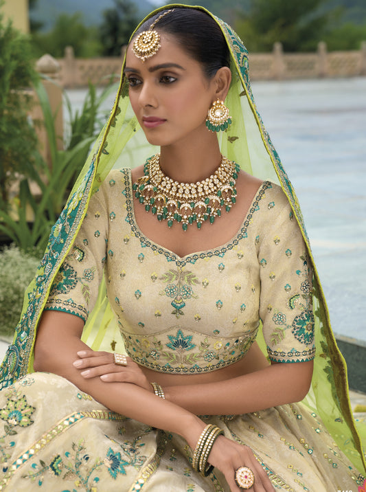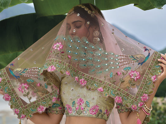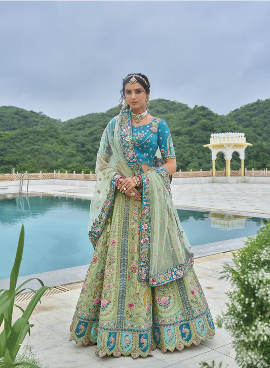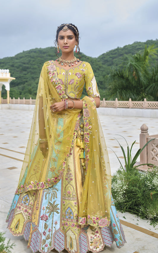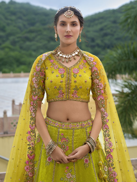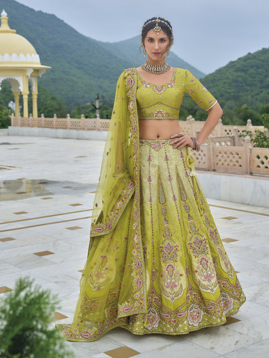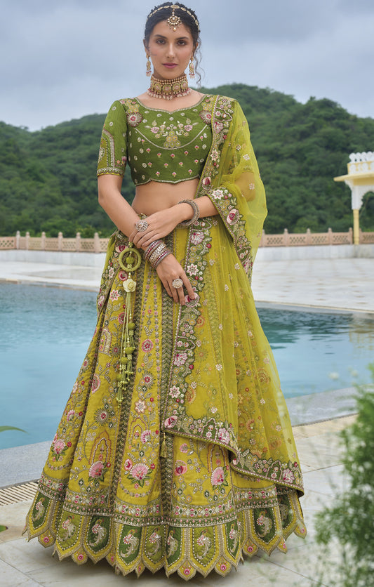 Mehendi Green & Yellow Heavy Embroidered Lehenga