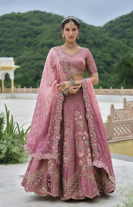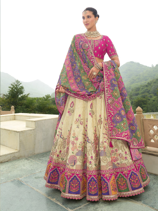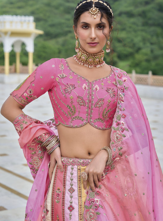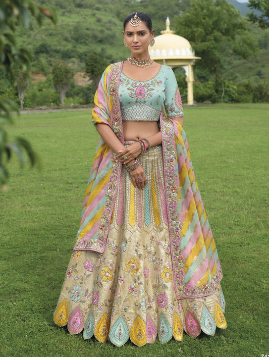 Gold Multi Pastels Heavy Embroidered Lehenga