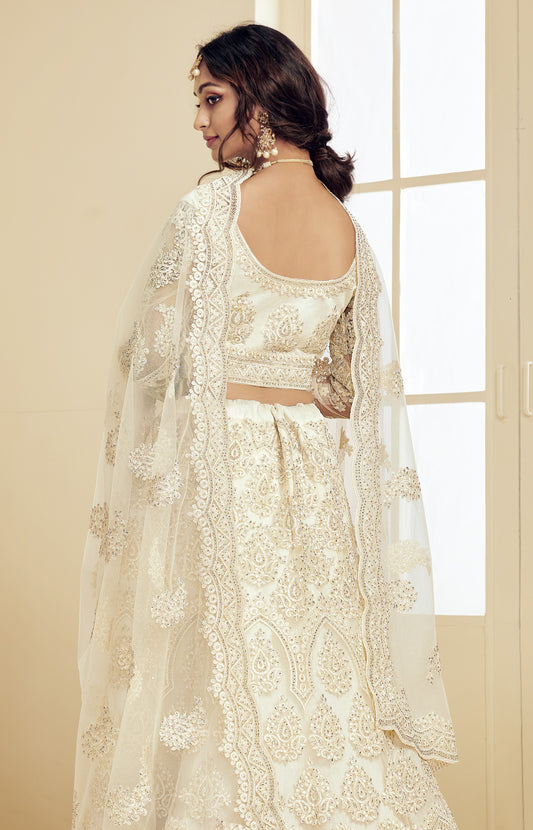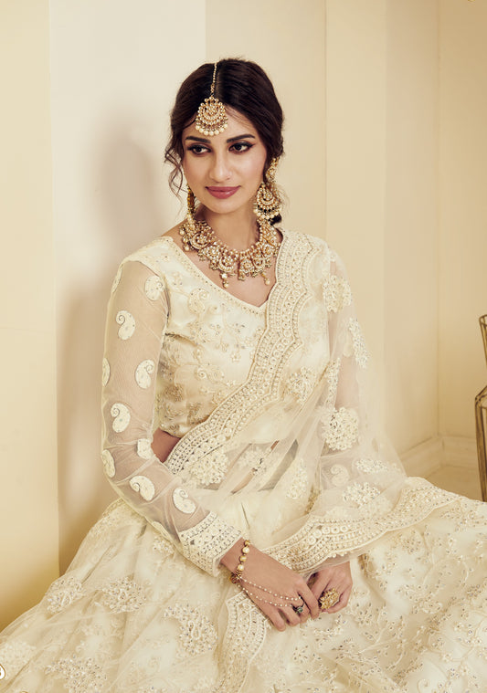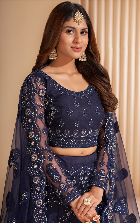 Tuscany Blue Heavy Embroidered Net Lehenga