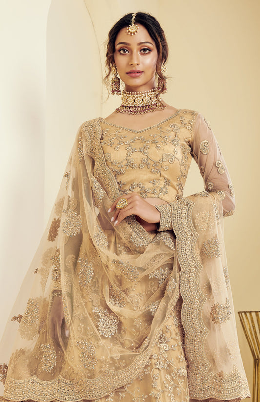 Cinnamon Brown Heavy Embroidered Net Lehenga