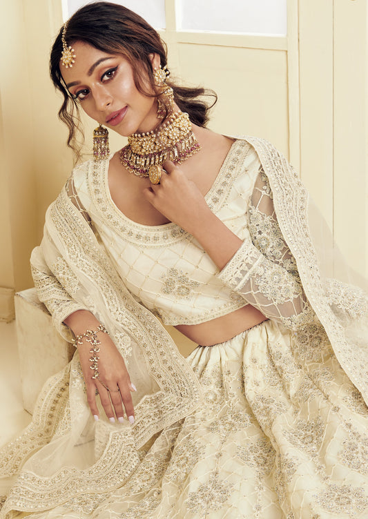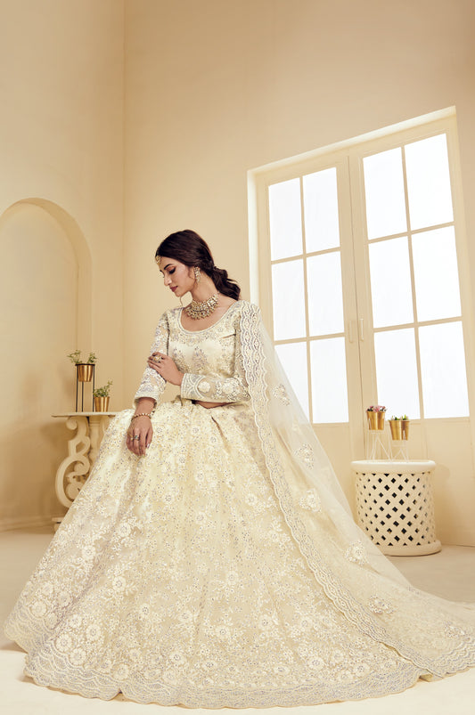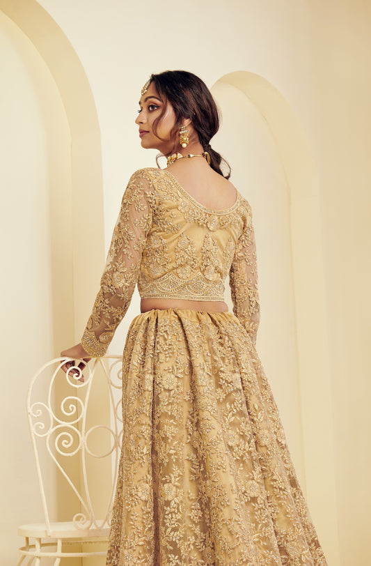 Turmeric Yellow Heavy Embroidered Net Lehenga