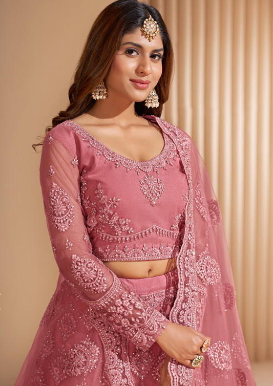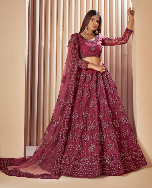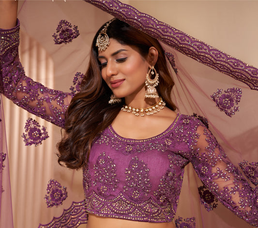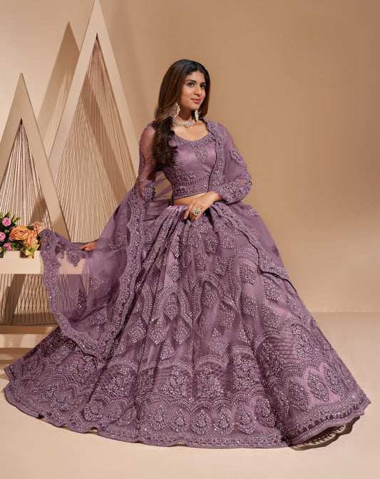 Taffy Mauve Heavy Embroidered Net Lehenga